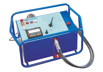 - – Электрическая маслостанция с блоком управления предназначена для перемещения подвижной пары хомутов центратора и создания необходимого прижимного усилия на этапах сварочного процесса. Состоит из средств измерения и контроля (давления, температуры, времени), трехпозиционного распределителя потока, монтажной плиты и нагнетающей установки.