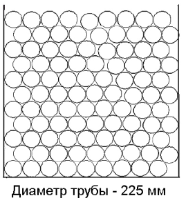 Труба Ø 225Количество труб: 99 шт. Количество, п.м.: 12 п.м. – 1188 п.м.; 12,5 п.м. – 1237,50 п.м.; 13 п.м. – 1287 п.м. Высота загрузки: 2,48м. Количество рядов: 11 шт. (в рядах по 9 шт.) |